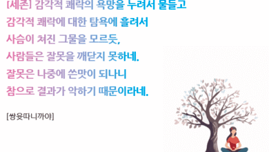 한 때 세존께서 싸밧티 시에 계셨다. 그 때 꼬쌀라 국의 빠쎄나디 왕은 한 쪽에 앉아서 세존께 이와 같이 말씀드렸다. [빠쎄나디] “세존이시여, 제가 한적한 곳에서 홀로 고요히 명상하는데 이와 같이 ‘세상에 막대한 재화를 획득하고서도 거기에 취하지 않고방일하지 않고 감각적 쾌락의 욕망에 빠지지 않고 뭇삶에게 죄를 짓지 않는 사람은 적다. 세상에 막대한 재화를 획득하고서 거기에 취하고방일하고 감각적 쾌락의 욕망에 빠지고 뭇삶에게 죄를 짓 는 사람은 많다.’라는 생각이 마음속에 떠올랐습니다.” [세존] “대왕이여, 그렇습니다. 대왕이여, 그렇습니다. 세상에 막대한 재화를 획득하고서도 거기에 취하지 않고 방일하지 않고 감각적 쾌락의 욕망에 빠지지 않고 뭇삶에게 죄를 짓지 않는 사람은 적습니다. 세상에 막대한 재화를 획득하고서 거기에 취하고 방일하고 감각적 쾌락의욕망에 빠지고 뭇삶에게 죄를 짓는 사람은 많습니다.” [세존] “감각적 쾌락의 욕망을 누려서 물들고 감각적 쾌락에 대한 탐욕에 흘려서 사슴이 쳐진 그물을 모르듯, 사람들은 잘못을 깨닫지 못하네. 잘못은 나중에 쓴맛이 되나니 참으로 결과가 악하기 때문이라네. –쌍윳따니까야-
